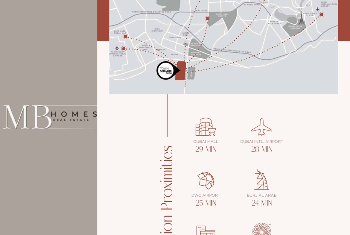 Savannah, located in the heart of Town Square Dubai, offers an ideal combination of modern living and natural beauty. This vibrant community is enriched with green spaces, jogging trails, bike lanes, cafes, and retail stores. The lively ambiance ensures that all of your needs are met within the community, promoting vitality and hospitality throughout.